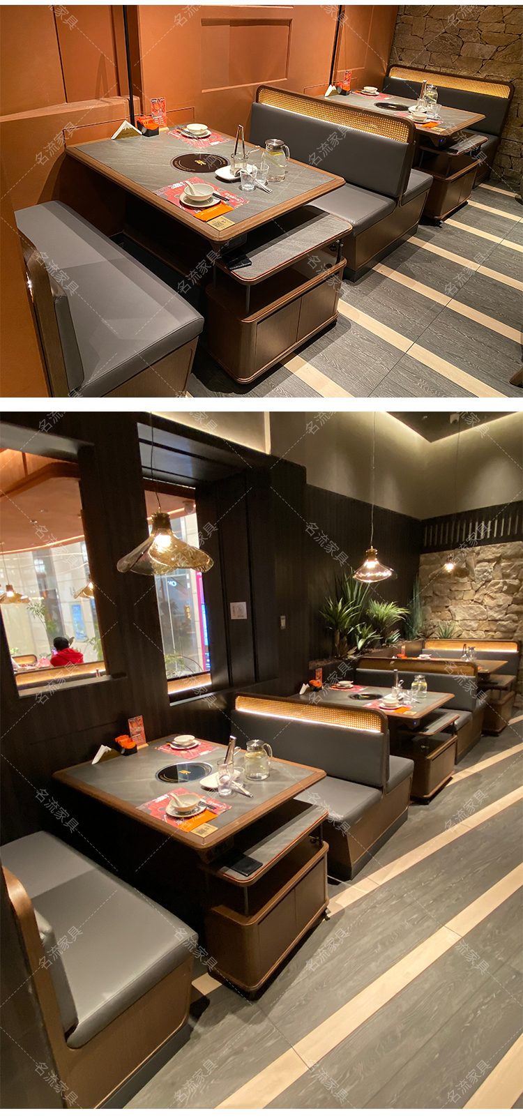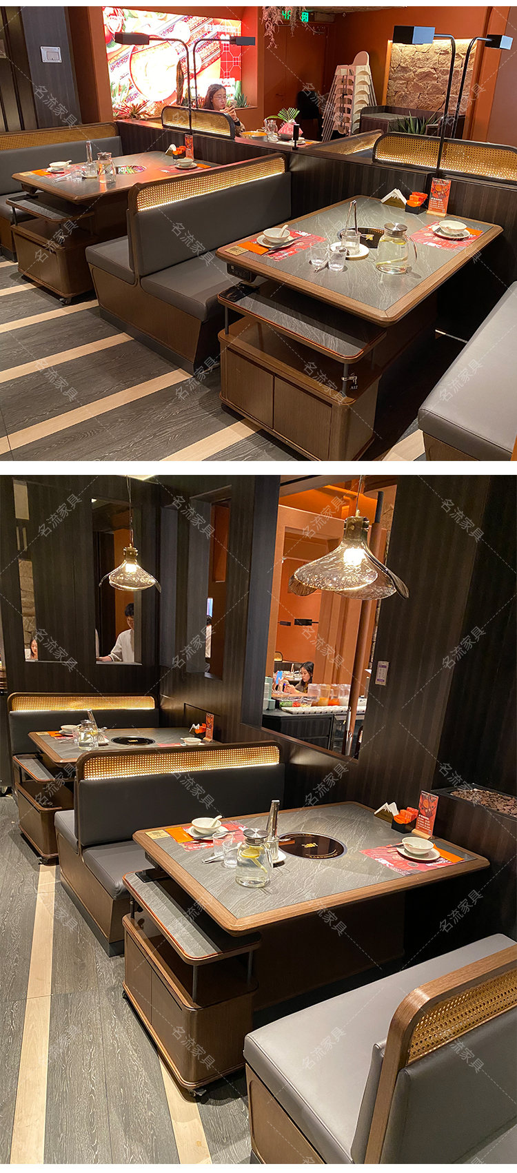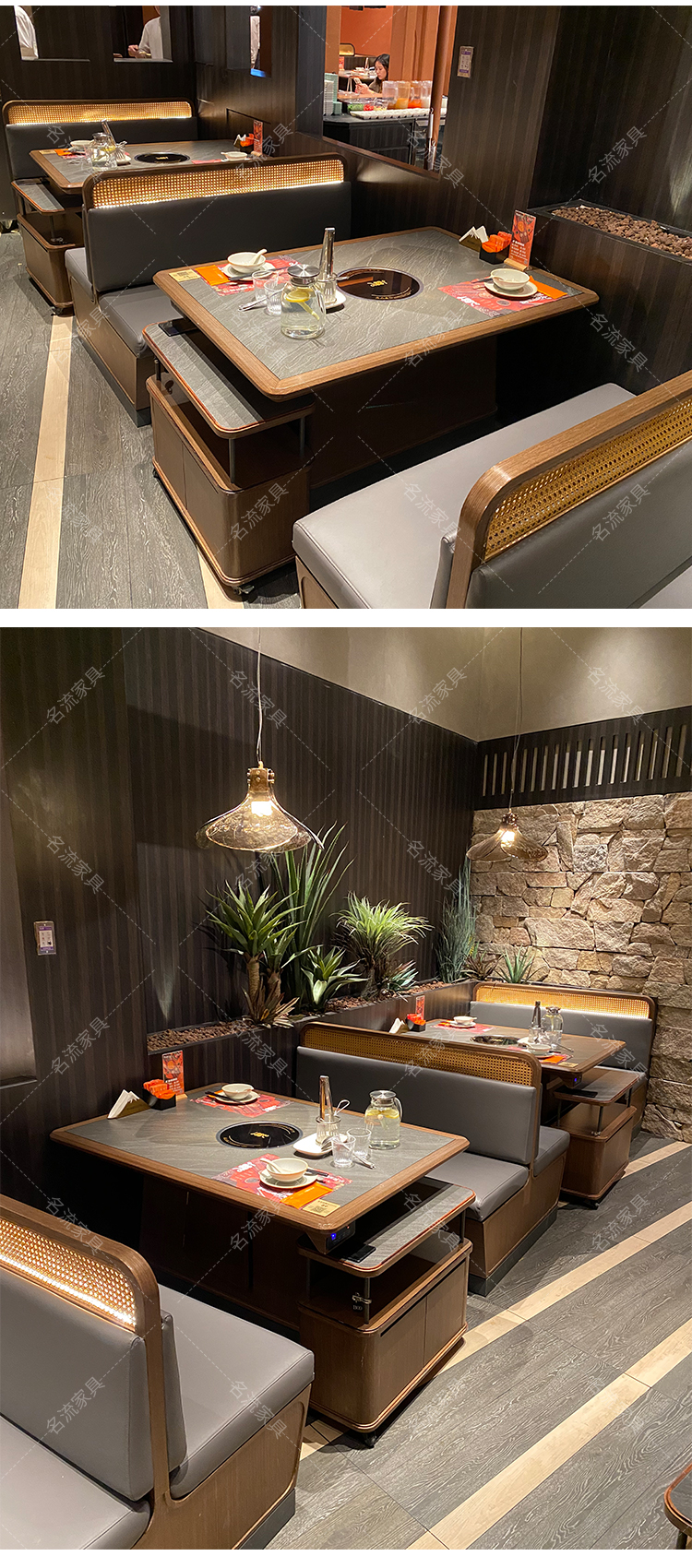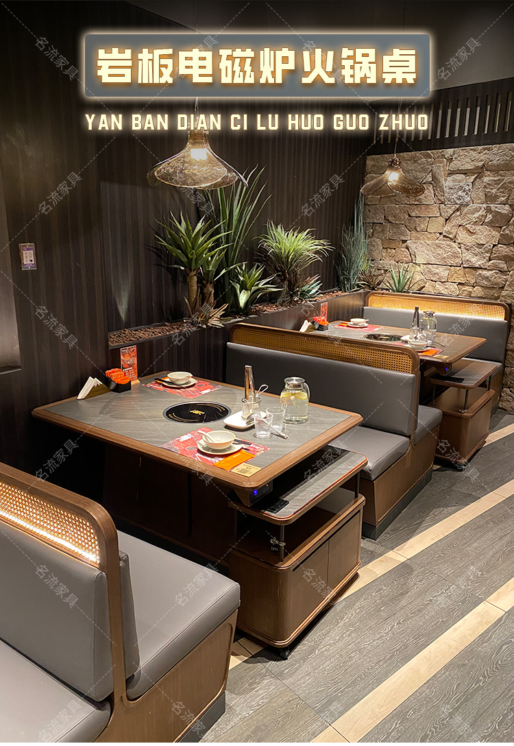 岩板桌面实木边电磁炉火锅桌商用厂家直销烤肉桌组合定制