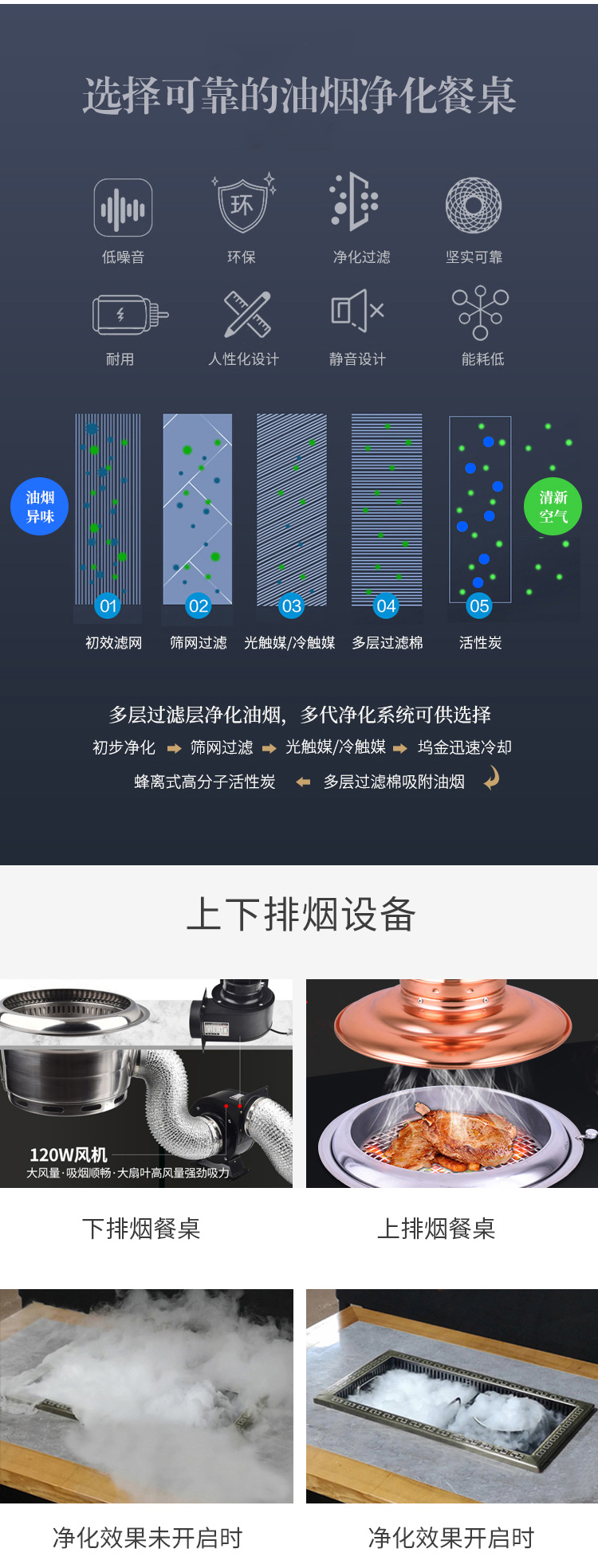 石英石桌面方型烤涮一体自助桌电磁炉火锅桌无烟净化烤肉桌