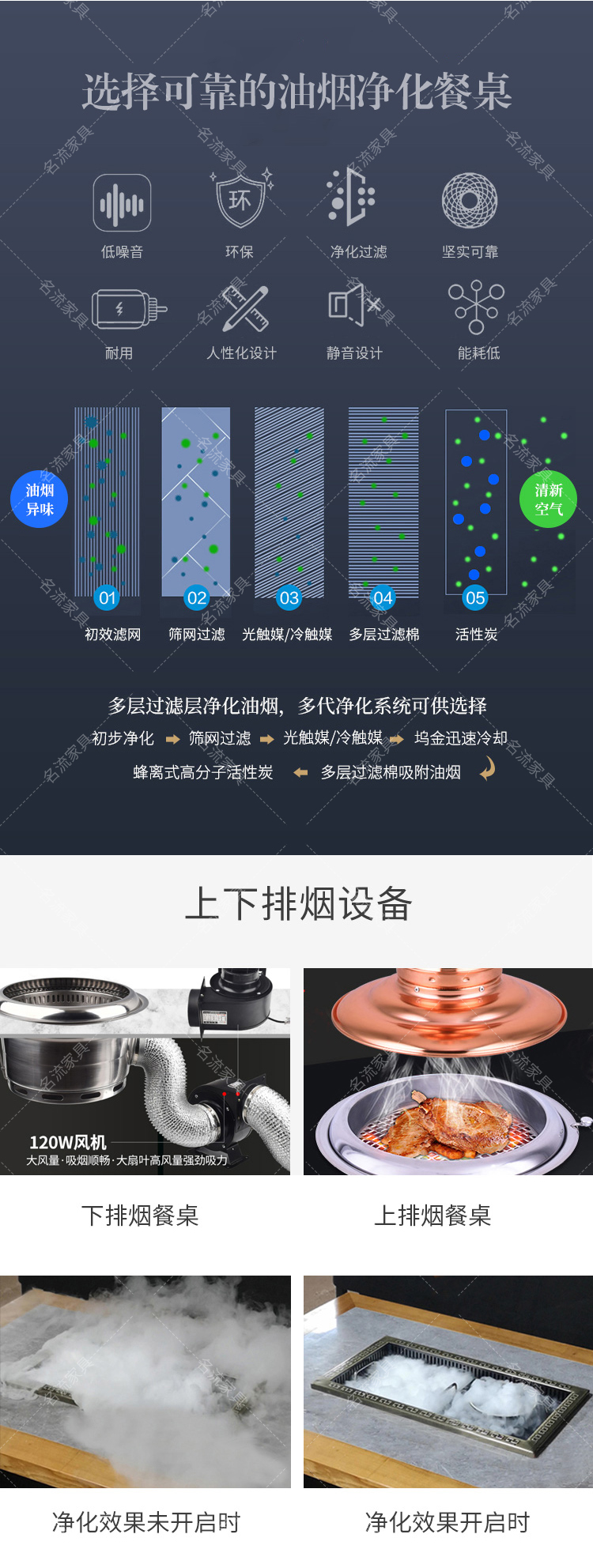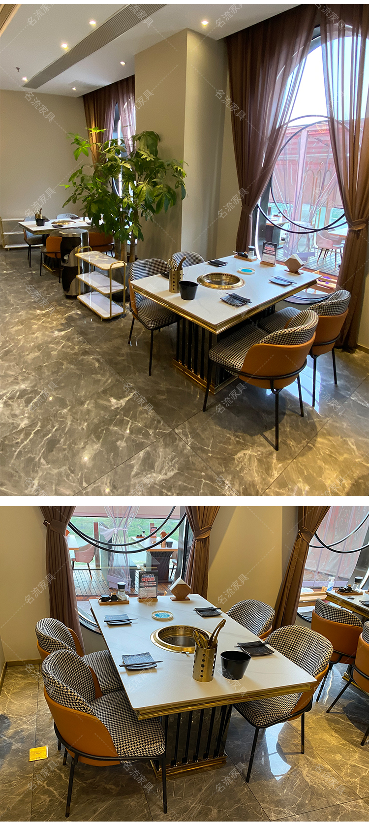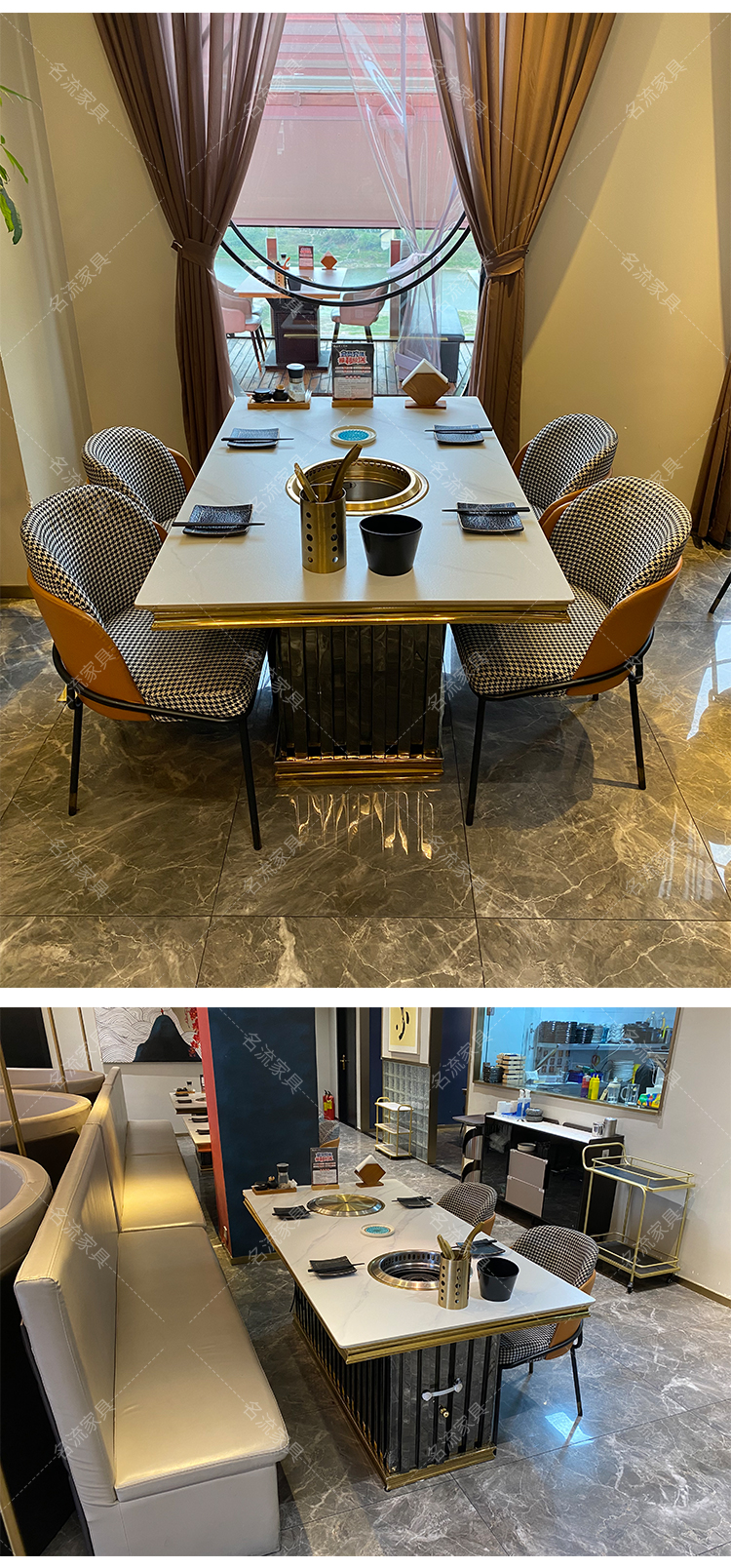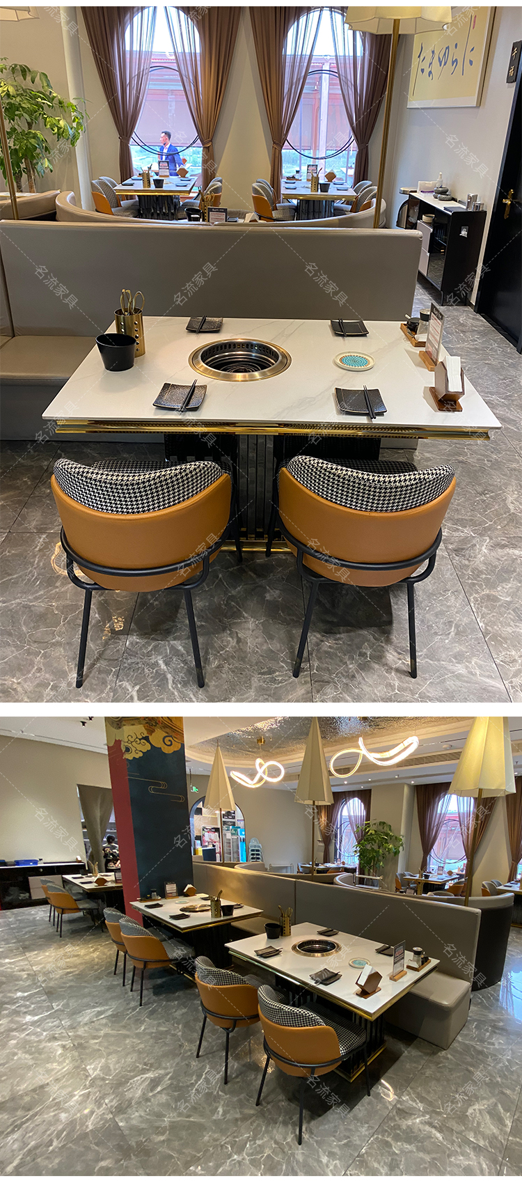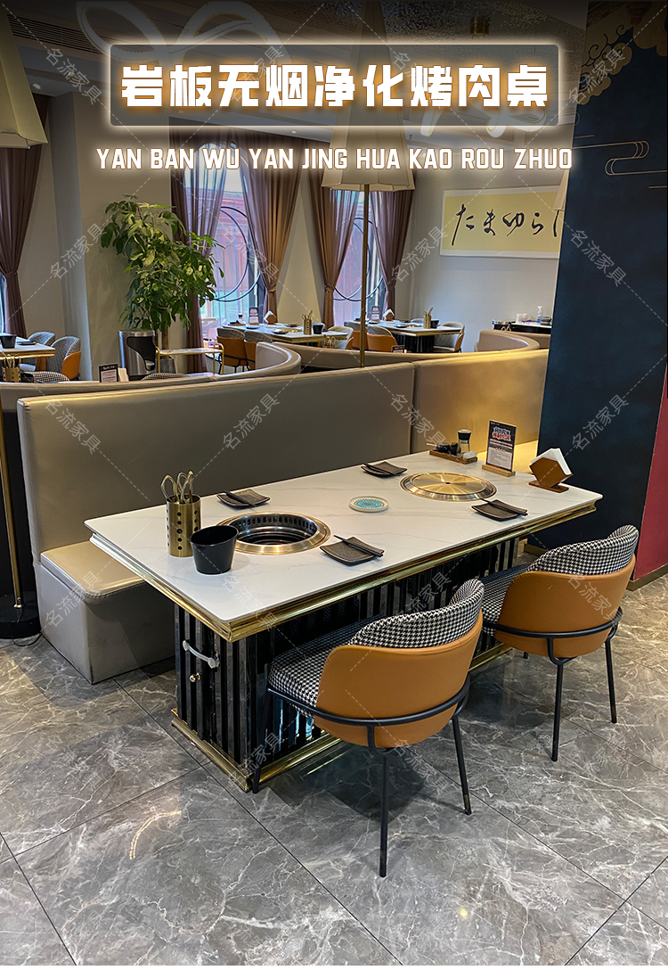 岩板桌面无烟净化烤肉桌商用厂家定制餐桌椅组合