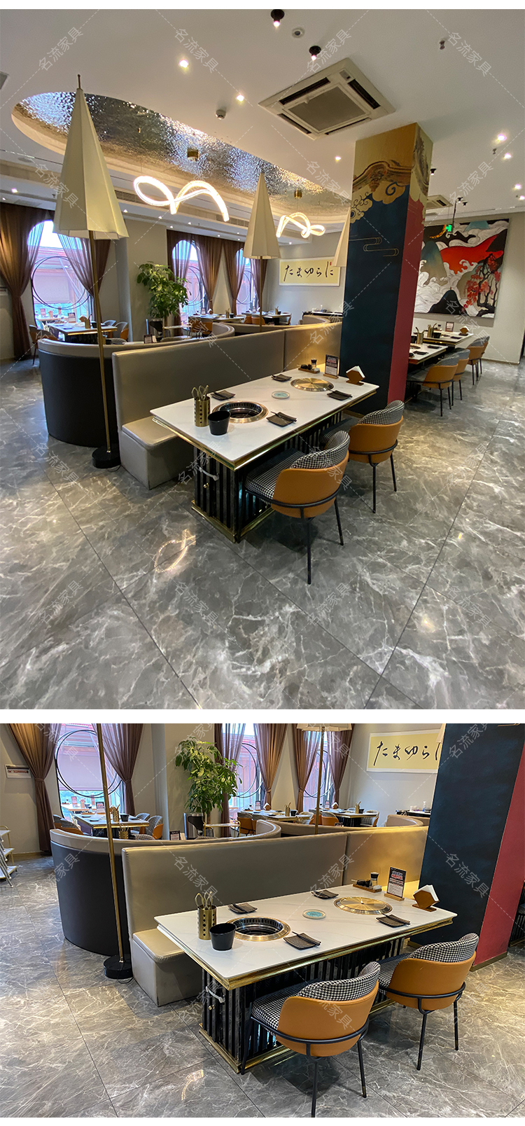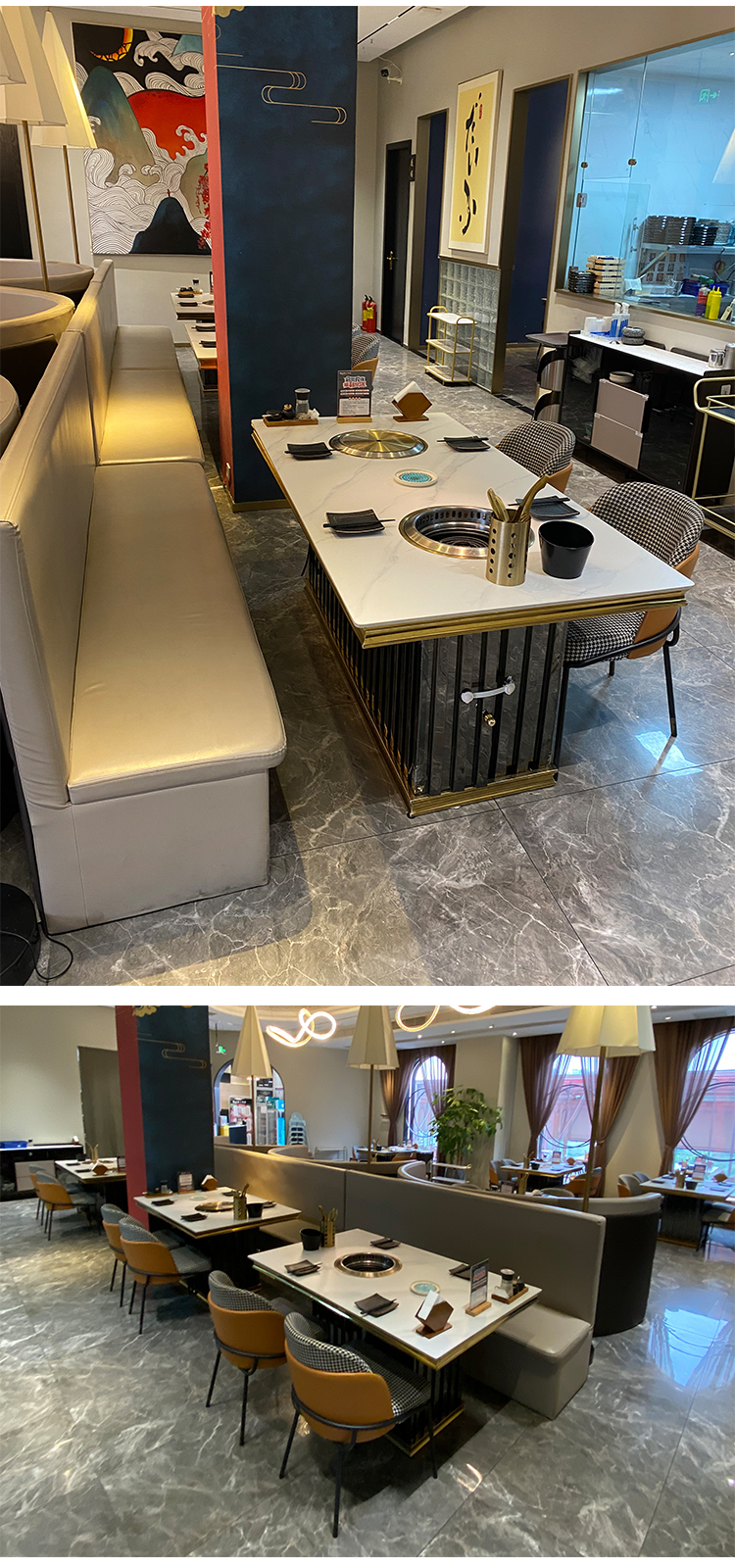岩板桌面无烟净化烤肉桌商用厂家直销定制餐桌椅组合